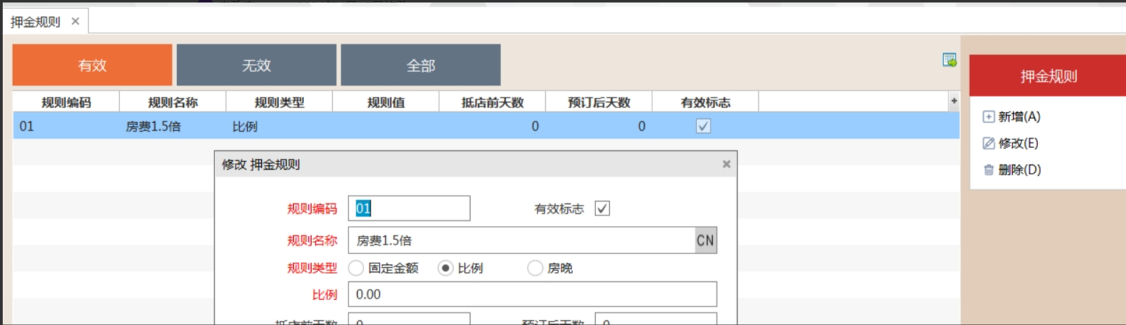 登录ipms组织单元-资源管理 -财务类代码-押金规则-修改