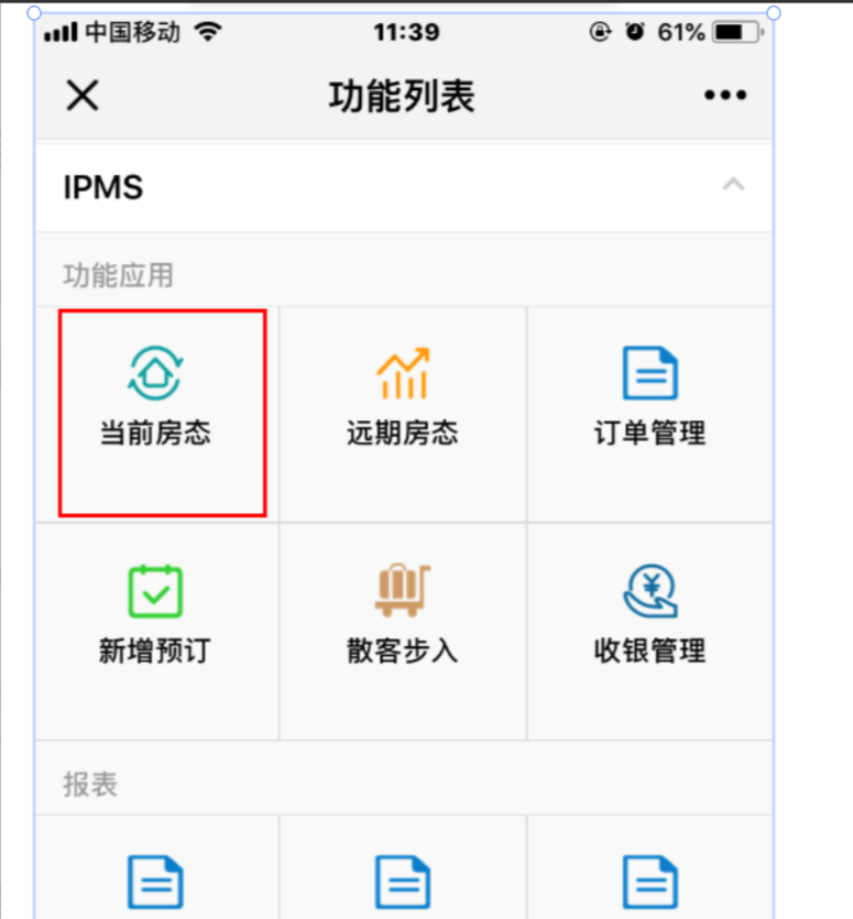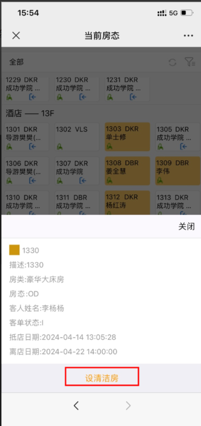 一、进入工作圈后打开IPMS中的当前房态 1、选中未清洁房间后,弹出选项中选择对应设置即可设置清洁房