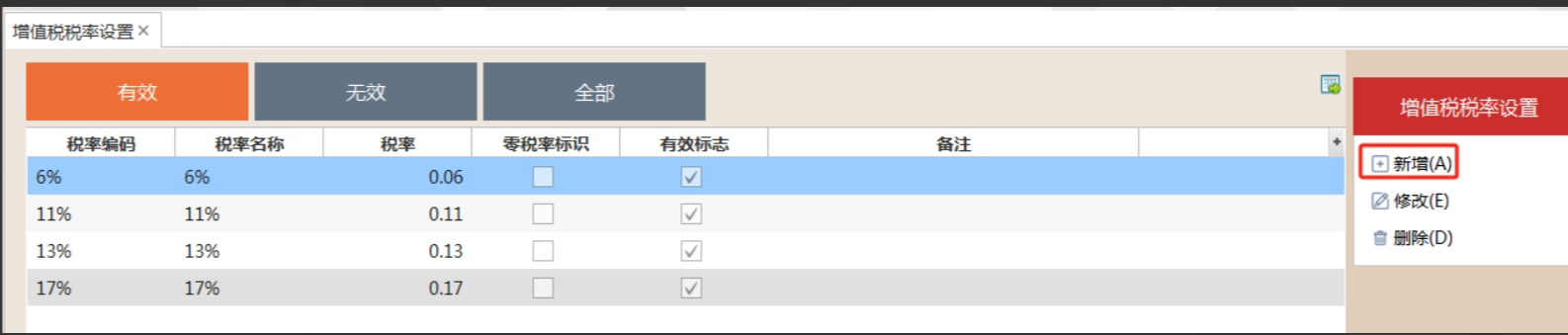 登录ipms组织单元-资源管理 -财务类代码-增值税税率设置-新增