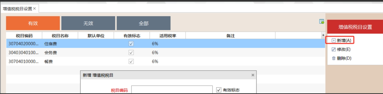 登录ipms组织单元-资源管理 -财务类代码-增值税税目设置-新增