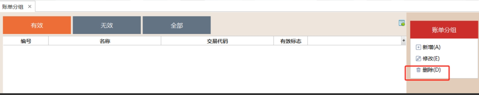 登录ipms组织单元-资源管理 -财务类代码-账单分组-删除