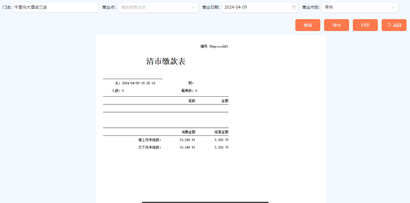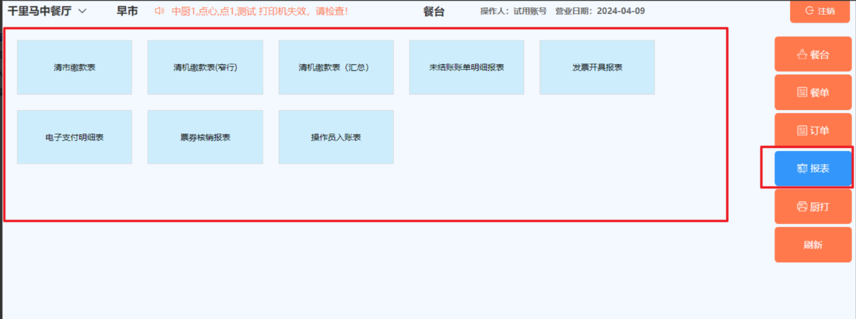控制点菜系统中的以下几张报表的营业日期查询条件的选择,没有此权限打开报表营业日期默认当前日期且呈灰色不可选择状态,有此权限营业日期查询条件是可选状态。