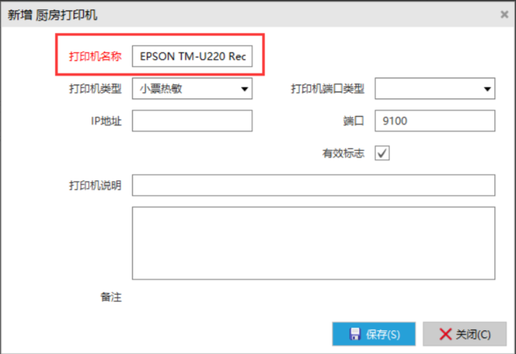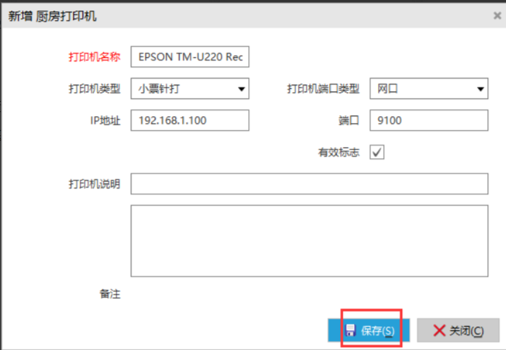 注:若为网口,则填入对应的ip,且端口填'9100'