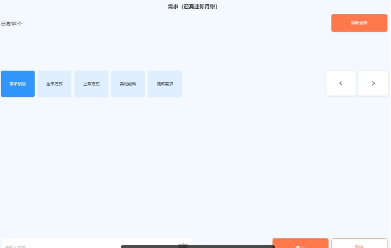 当客人对菜品有特殊需求,在区域 3 选择需求。特殊需求一般有即起、叫起、拼上等。
