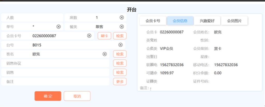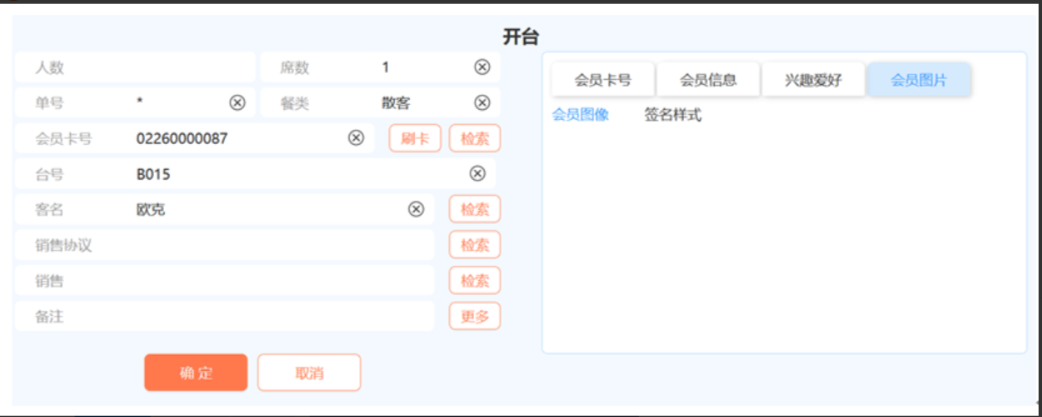 会员卡:点击“刷会员卡”按钮,刷会员卡即输入会员卡号。