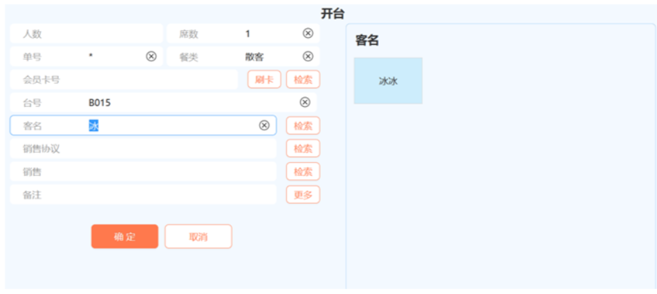 人数:具体就餐客人数,必须输入;