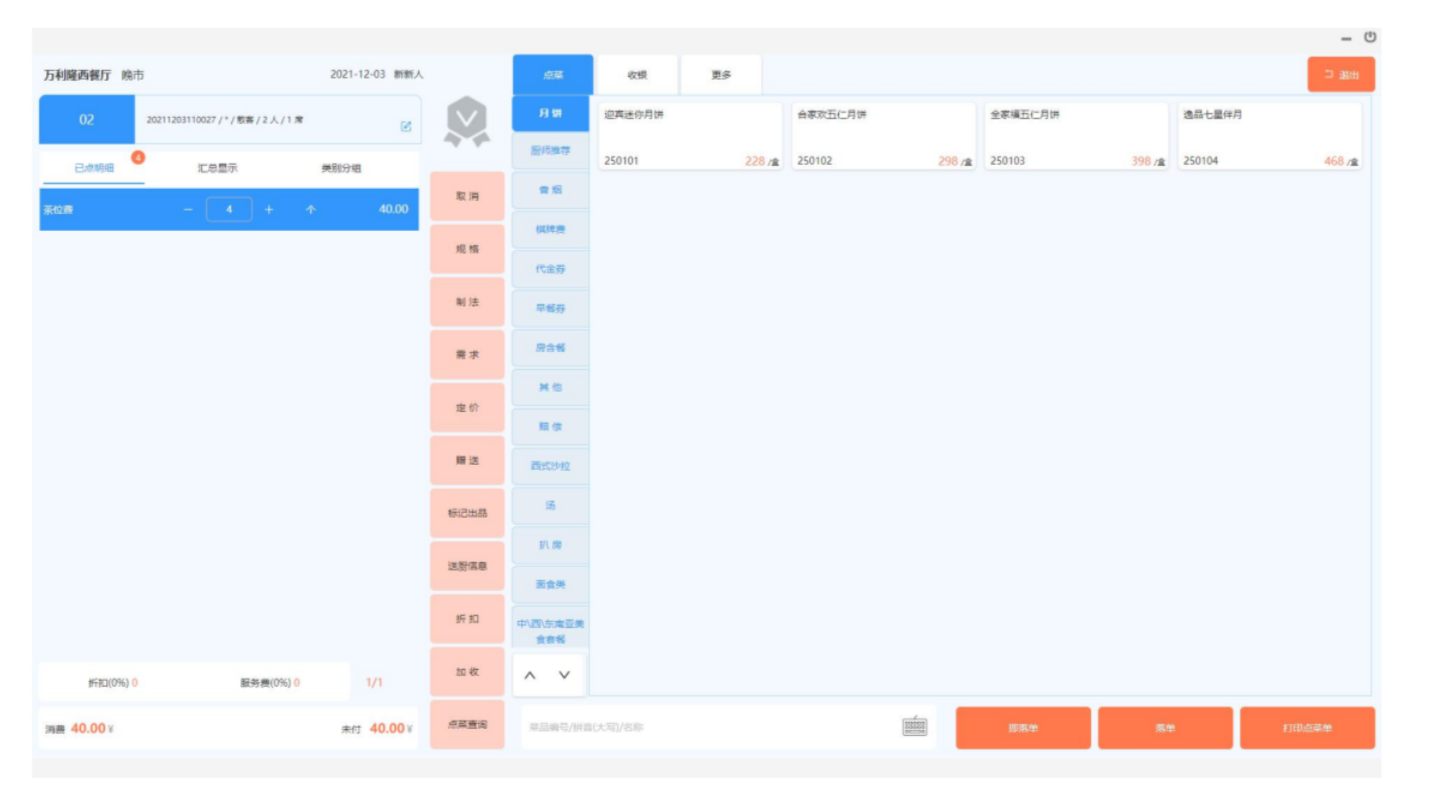 3、按确定后,则弹出点菜画面