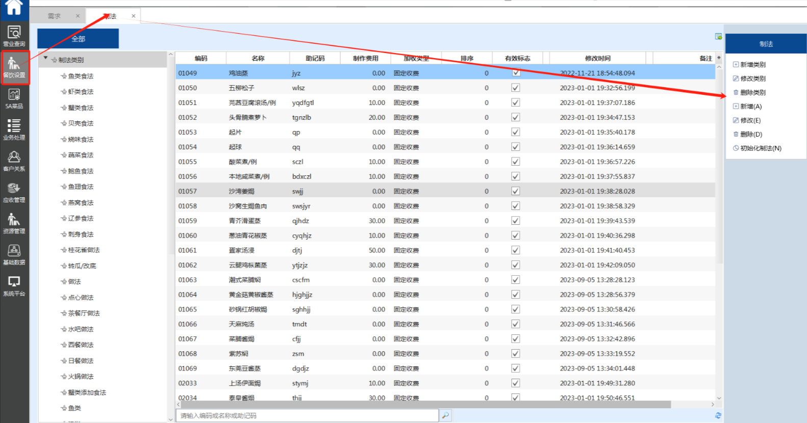 云餐饮系统制法非常灵活,可在菜品类别设置制法,也可有单个菜品设置制法,并且可