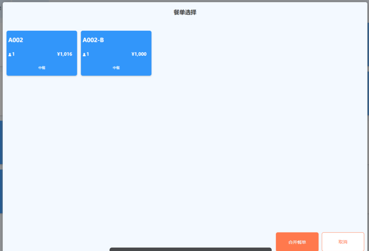 一张餐单分拆成多个餐单。