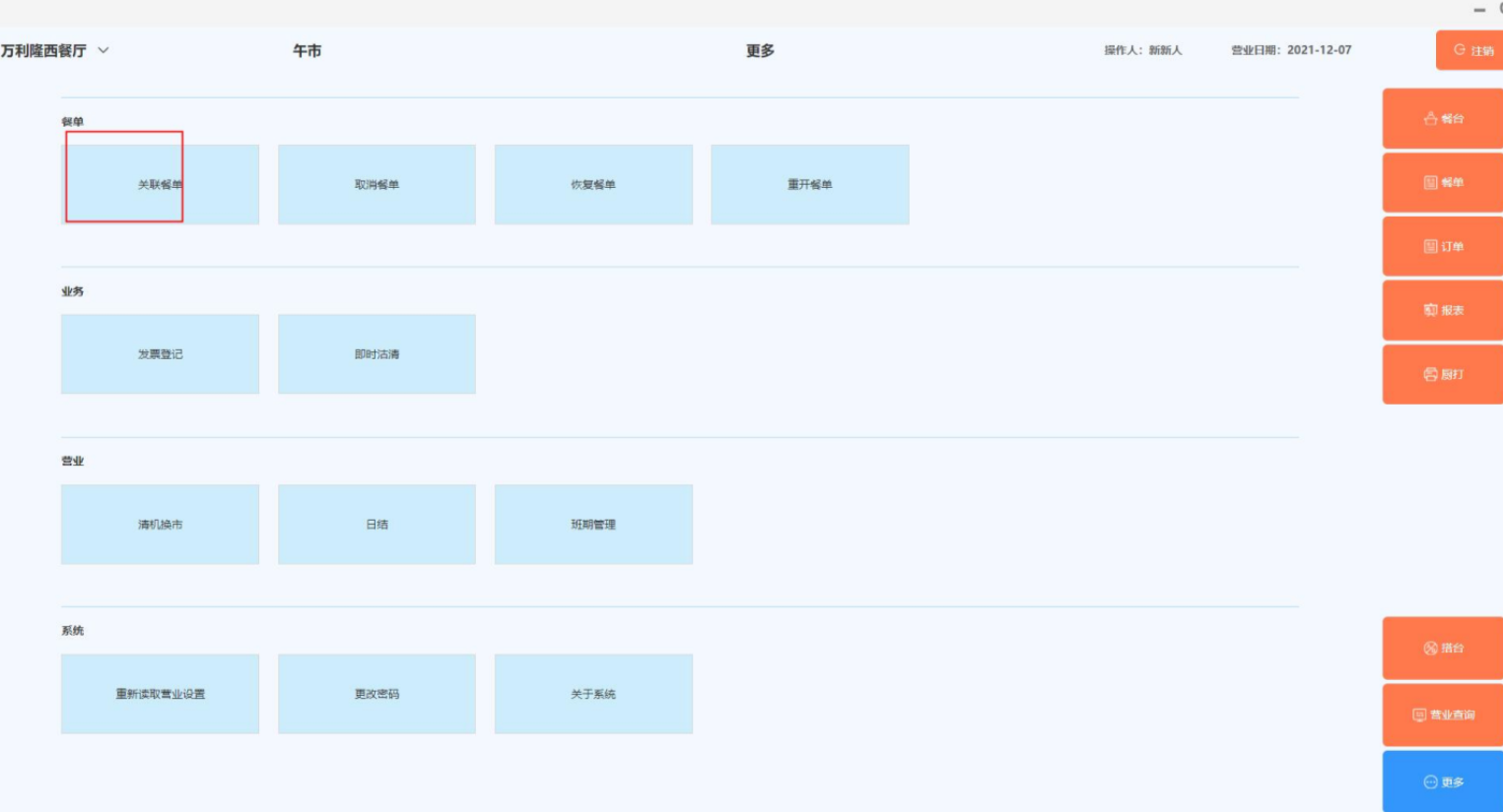 5、取消关联:已取消关联的餐单不允许一点结算;