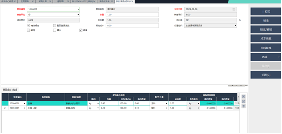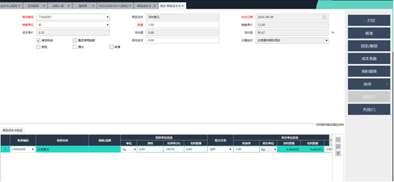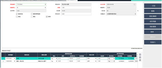 1)菜谱有设置菜品成本卡