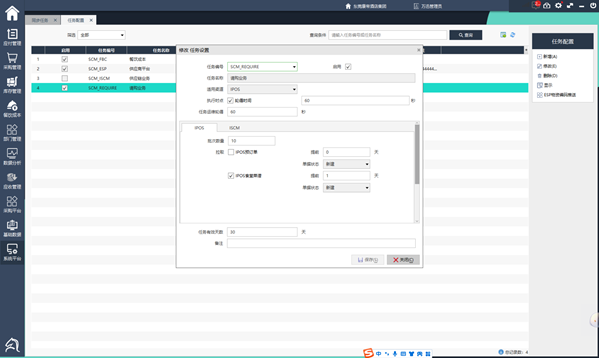 通过ISCM自动化任务机制,根据IPOS + 成本卡,以及销售订单+ 配方表的业务逻辑,获取IPOS的宴会厅/食堂菜谱与ISCM的销售订单,自动生成关联申购部门的请购单,以提升采购效率。 通过ISCM自动化任务机制获取IPOS食堂菜谱/ISCM销售订单,生成请购业务,(根据IPOS+菜品成本卡/销售订单+配方管理的业务