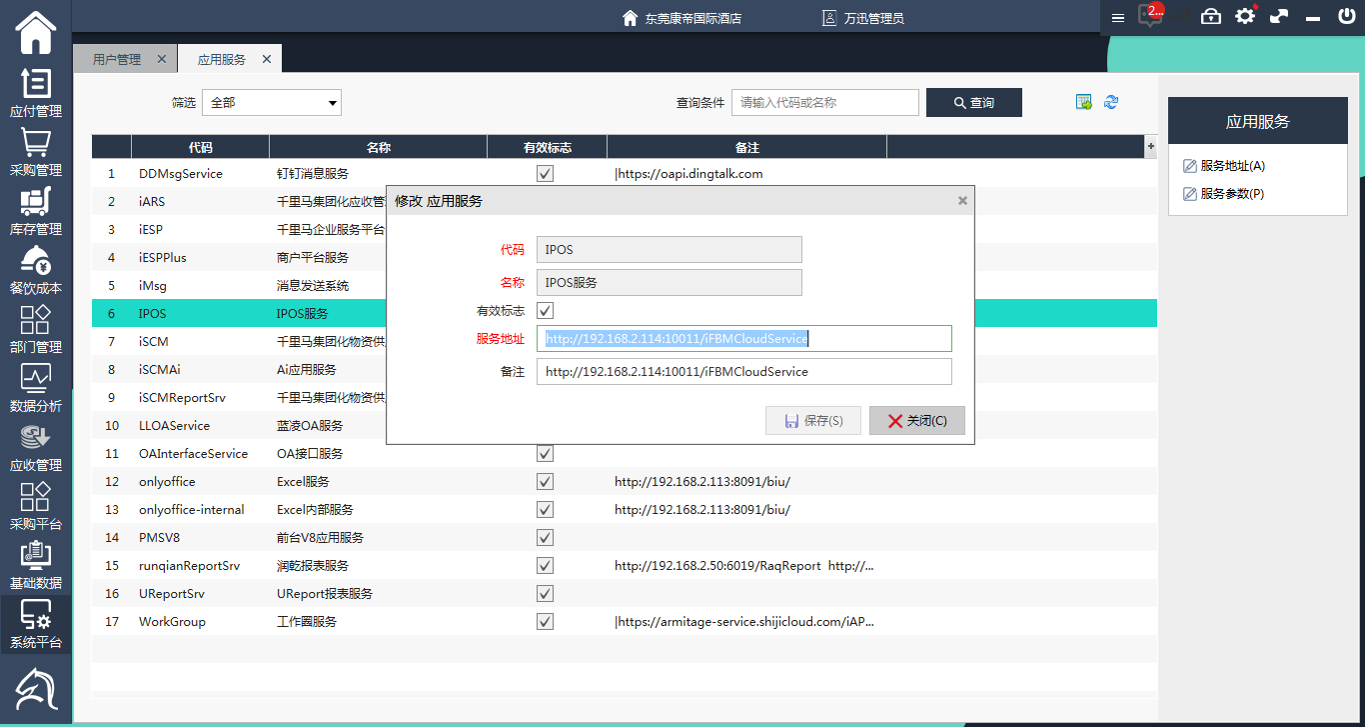3)iSCM和iPOS的应用服务设置