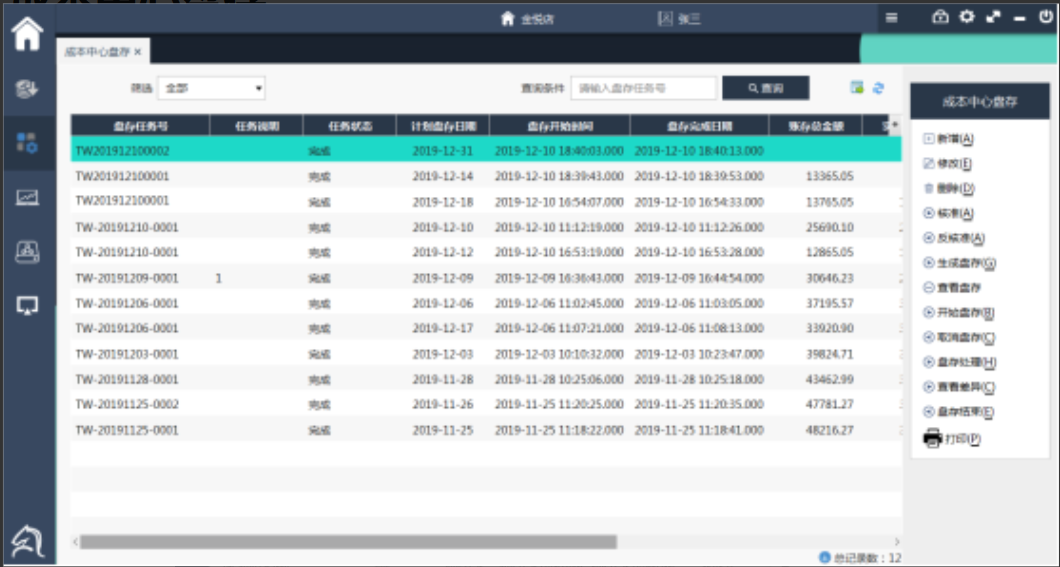 操作日志:查看成本中心盘存任务的操作记录。选中盘存任务,点击‘查看盘存’,点击‘操作日志’按钮查看。