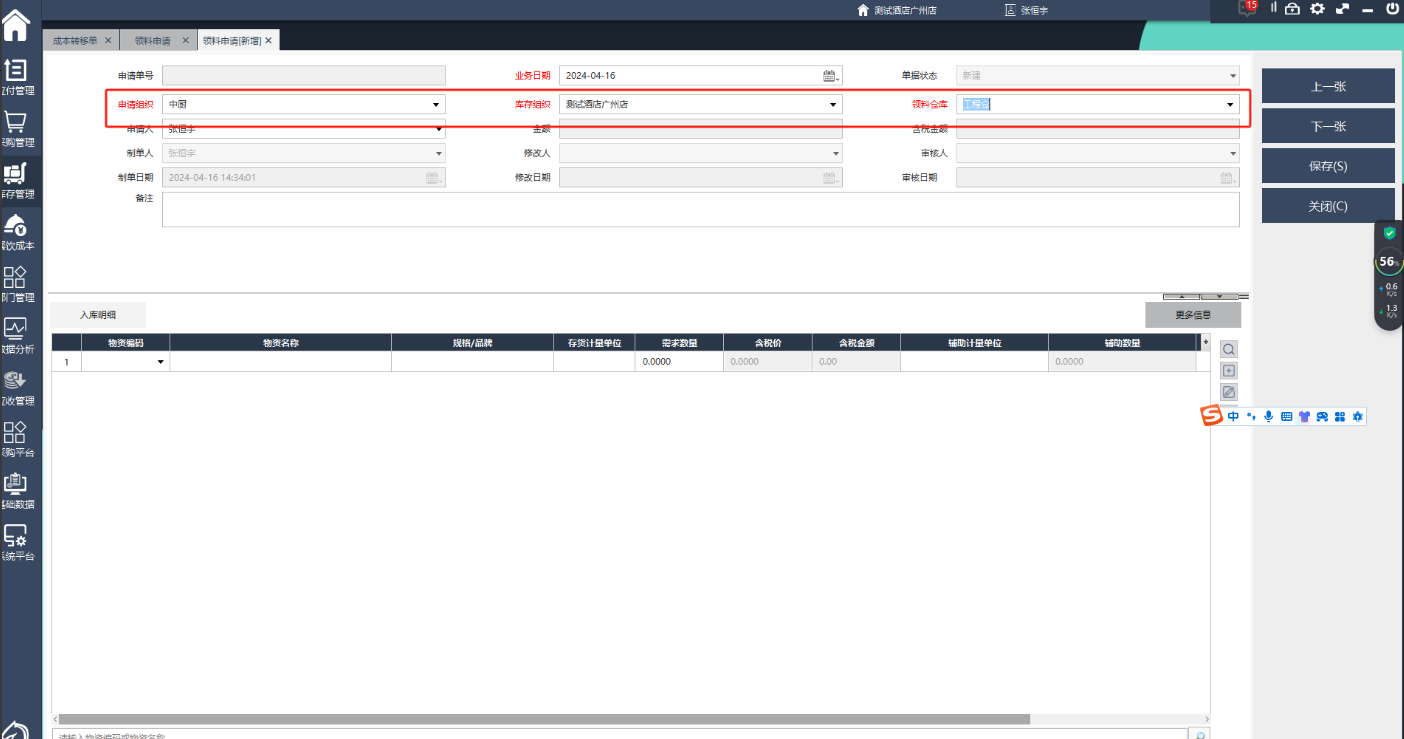 领料申请即是领料出库。主要处理部门(成本中心)向库存组织领用物资的相关业务。