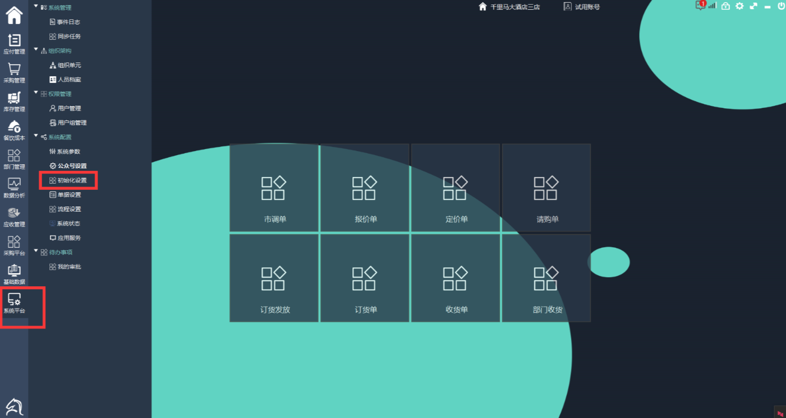 1、登录管理员账号,左侧点击系统平台,选择初始化设置