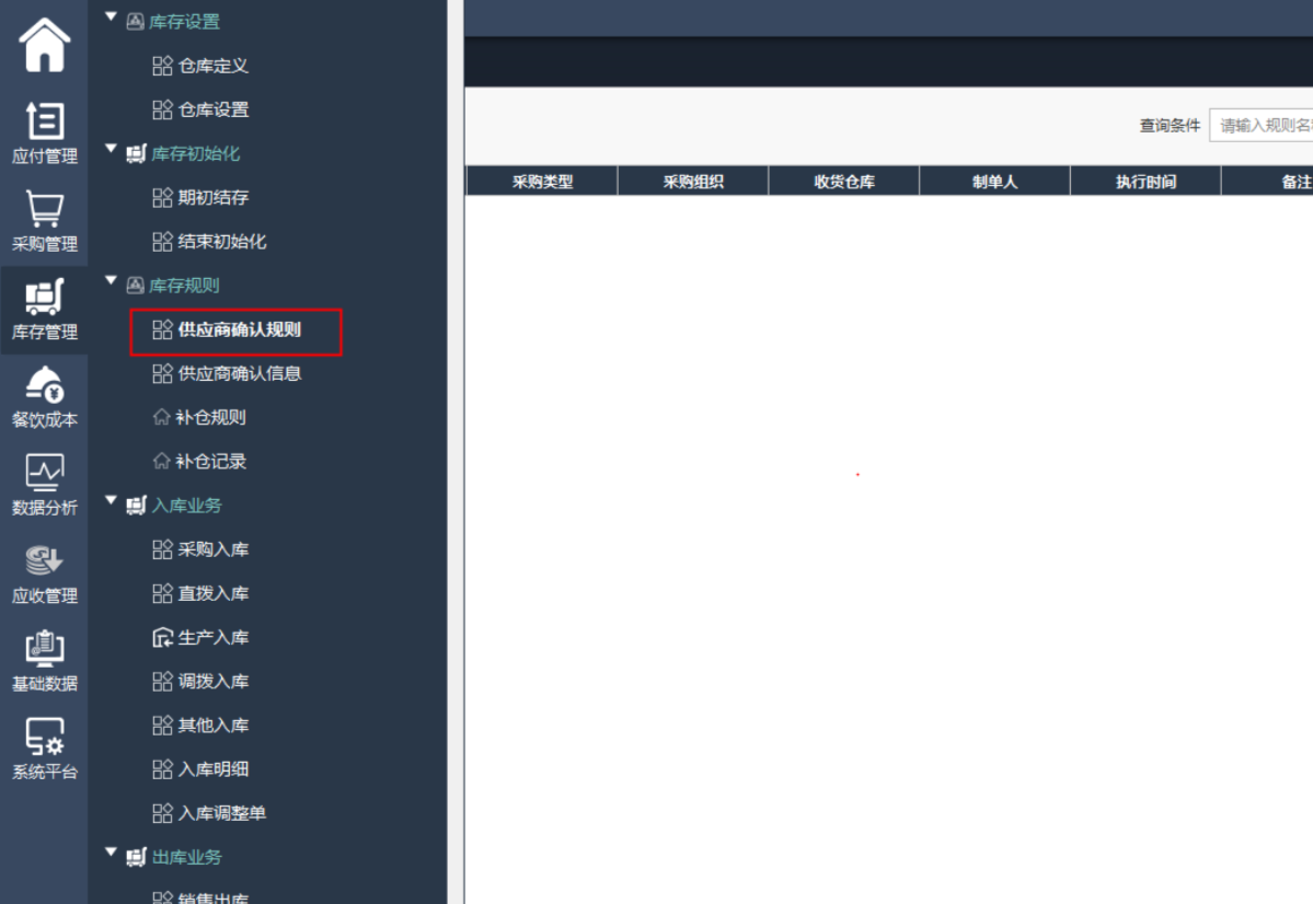 1、应用场景若系统默认的规则无法满足酒店的供应商确认规则,可在此进行修改调整。2、功能入口 2.1 供应商确认规则 2.1.1 登录iSCM组织单元,库存管理>供应商确认规则 2.1.2 根据酒店实际情况修改,修改后保存即可,