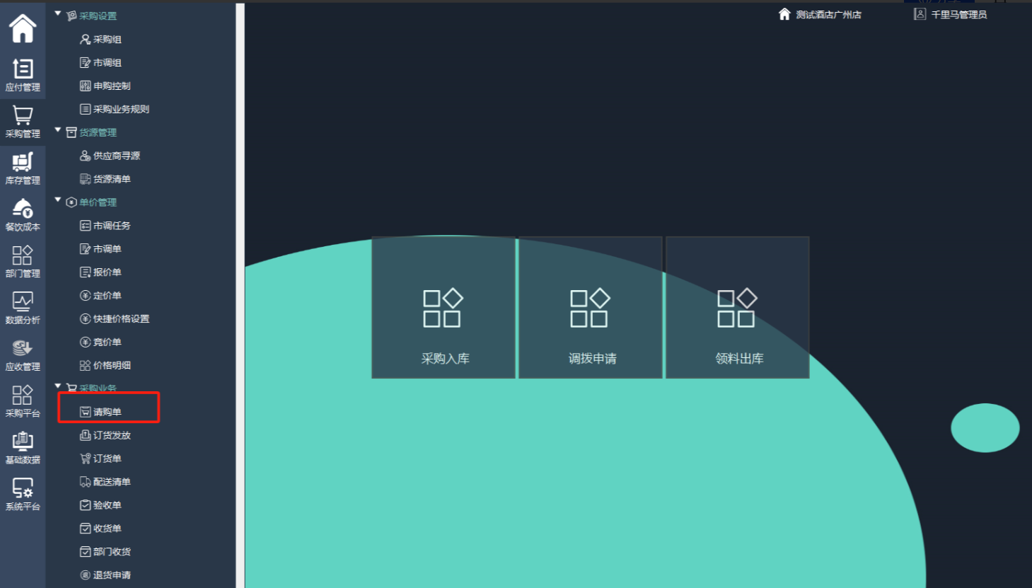 2.1 登录iscm资源组织,采购管理-->采购业务--请购单