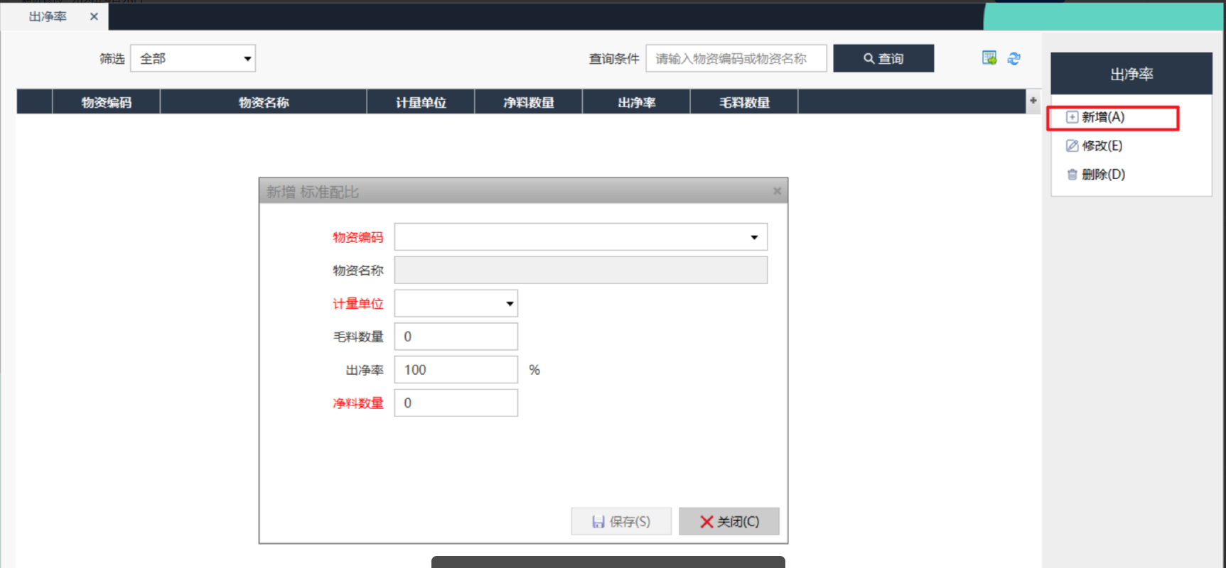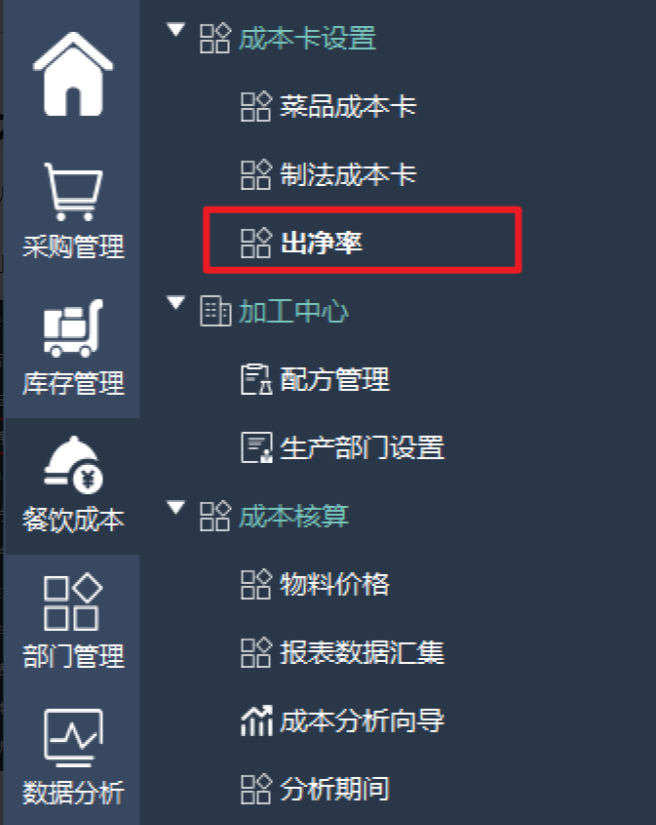 使用员工账号登陆到单店组织,设置各单店物资的出净率,进行毛料和净料的换算。