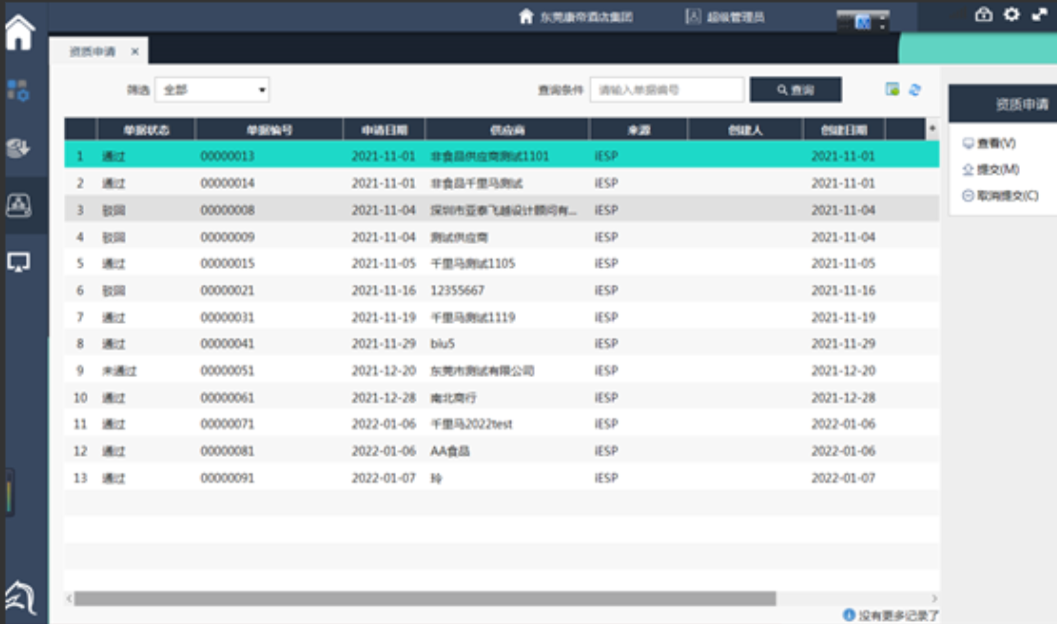 可便捷快速的查看通过邀请码与企业建立合作管理的供应商的资质信息。需超级管理员登录集团才能查看,如图