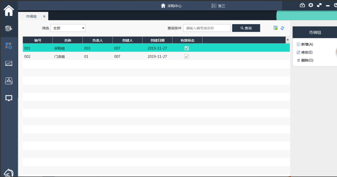 2.1市调组是调查市场价格的小组,主要功能有新增、修改、删除等。市调任务通过分配给市调组去市场进行价格调查。
