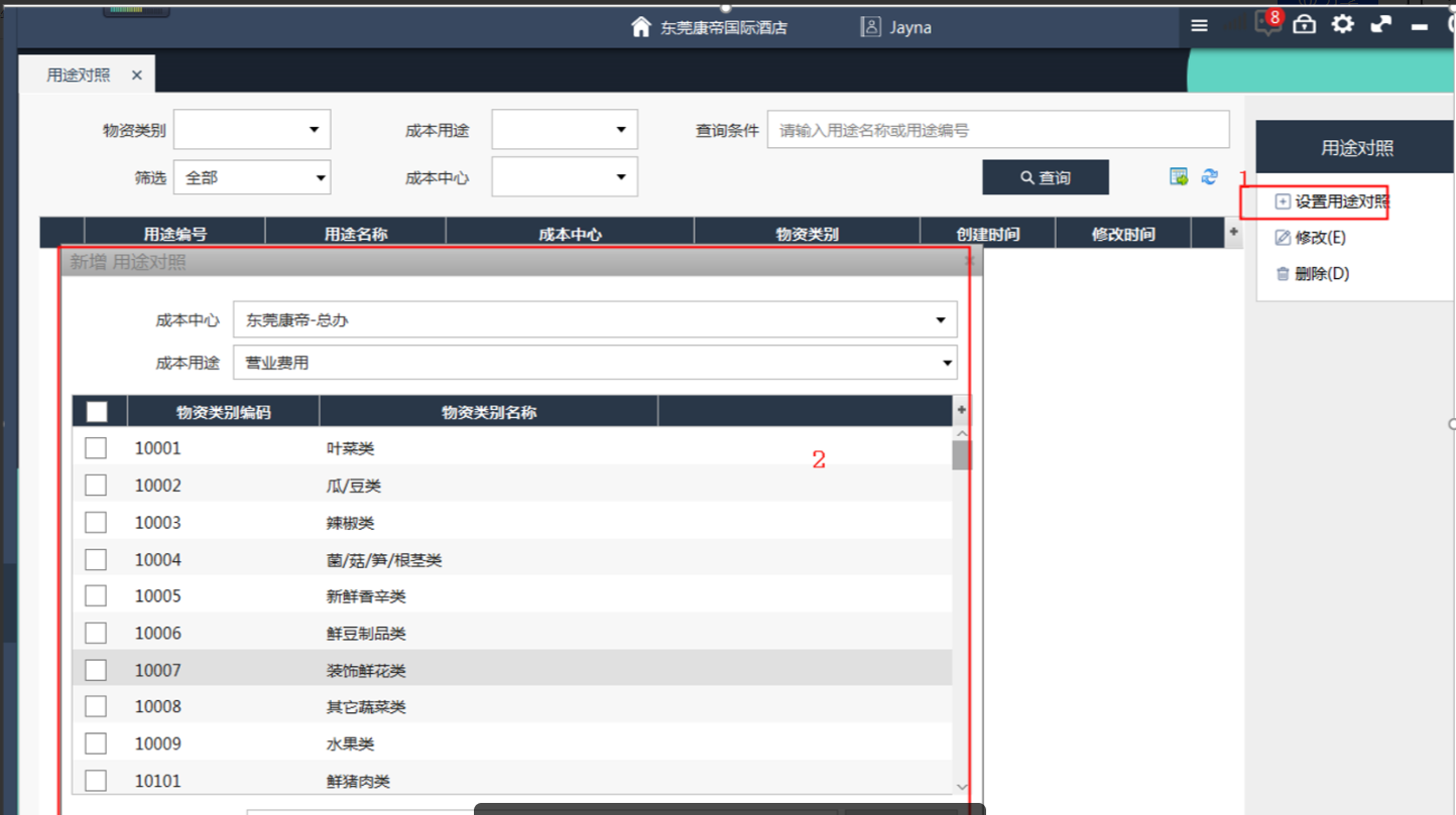 进入组织单元-基础数据-用途对照,即可进行用途对照的设置