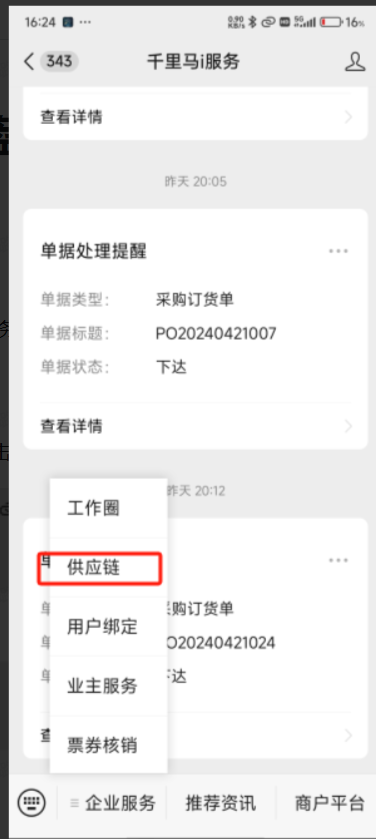业务说明: 移动盘点事务就是 电脑端的盘点任务的移动端操作。具体内容:1、登录:公众号“千里马i服务”,点击菜单:供应链,点击:盘点事务;2、对在电脑端生成是盘点单,进行填写,提交。3、盘点差异:进入盘点单,点击盘点差异