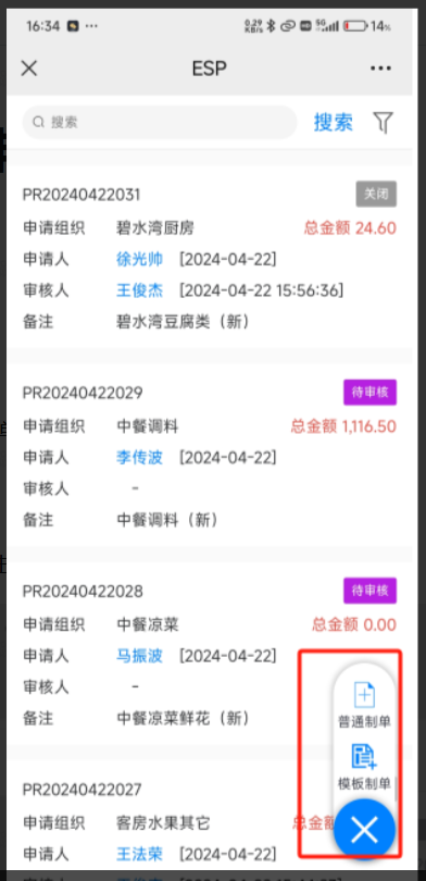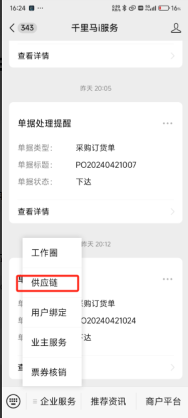 业务说明: 移动申购事务就是 采购管理的申购单的移动端操作。具体内容:1、登录:公众号“千里马i服务”,点击菜单:供应链,点击:申购事务;2、增加申购单: 点击右下角的“+”号图标,进行选择,普通申购单和模版制单。
