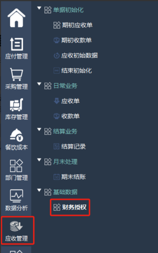 1、 登录IPMS集团应收系统,应收管理—基础数据--财务授权