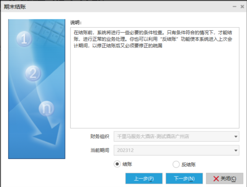 2、期末结账是将当前期间期末数结转到下一期间的期初,并关闭当前期间的操作。期末结账的主要功能有:结账和反结账。