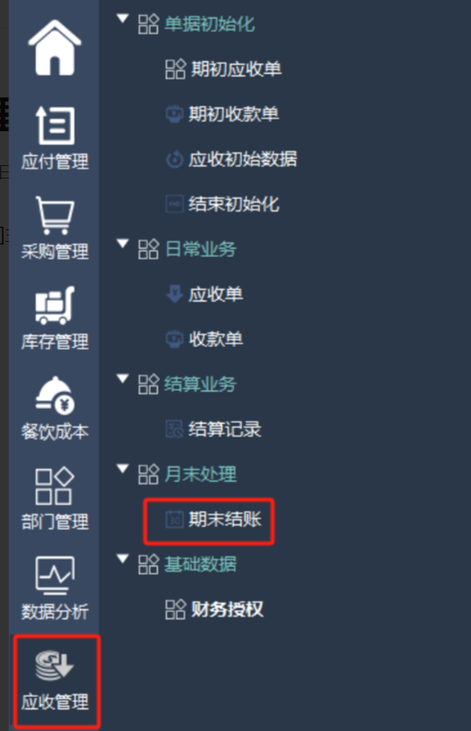 应收系统未结束初始化不能结账;当前期间内的应收及收款单据未全为已过账或已收款状态不能结账。
