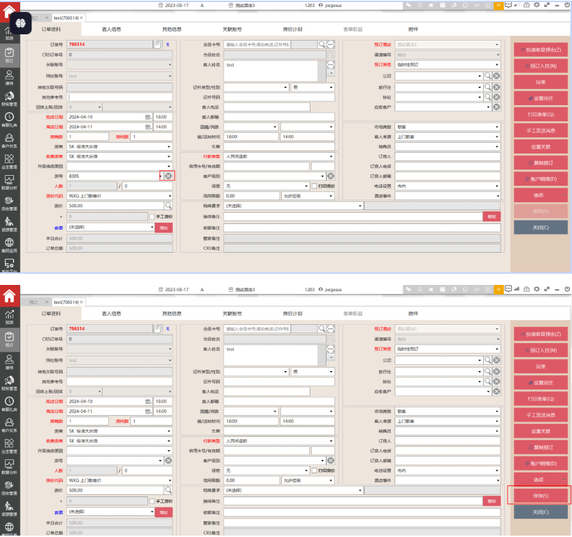 点击修改预订,进入客单界面,清除房号后保存即可。